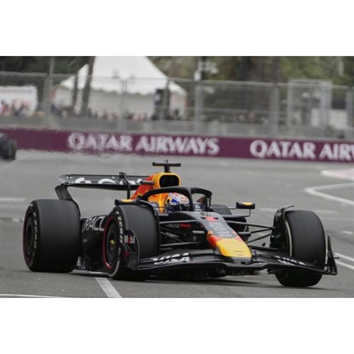 Minichamps 1:43 resin model of the #1 Red Bull RB21 as driven to victory by Max Verstappen in the 2025 Azerbaijan Grand Prix. The Dutchman took pole position and the race win for the second event running, just about keeping himself on the fringes of title contention.