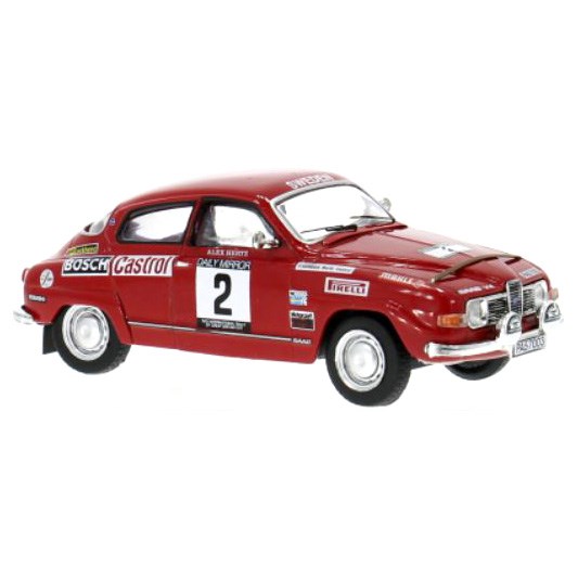 IXO 1:43 diecast model of the #2 Saab 96 V4 as driven to victory by Stig Blomqvist in the 1971 RAC Rally. The Swede took the win from Bjorn Waldegaard's Porsche 911 S by just over three minutes.