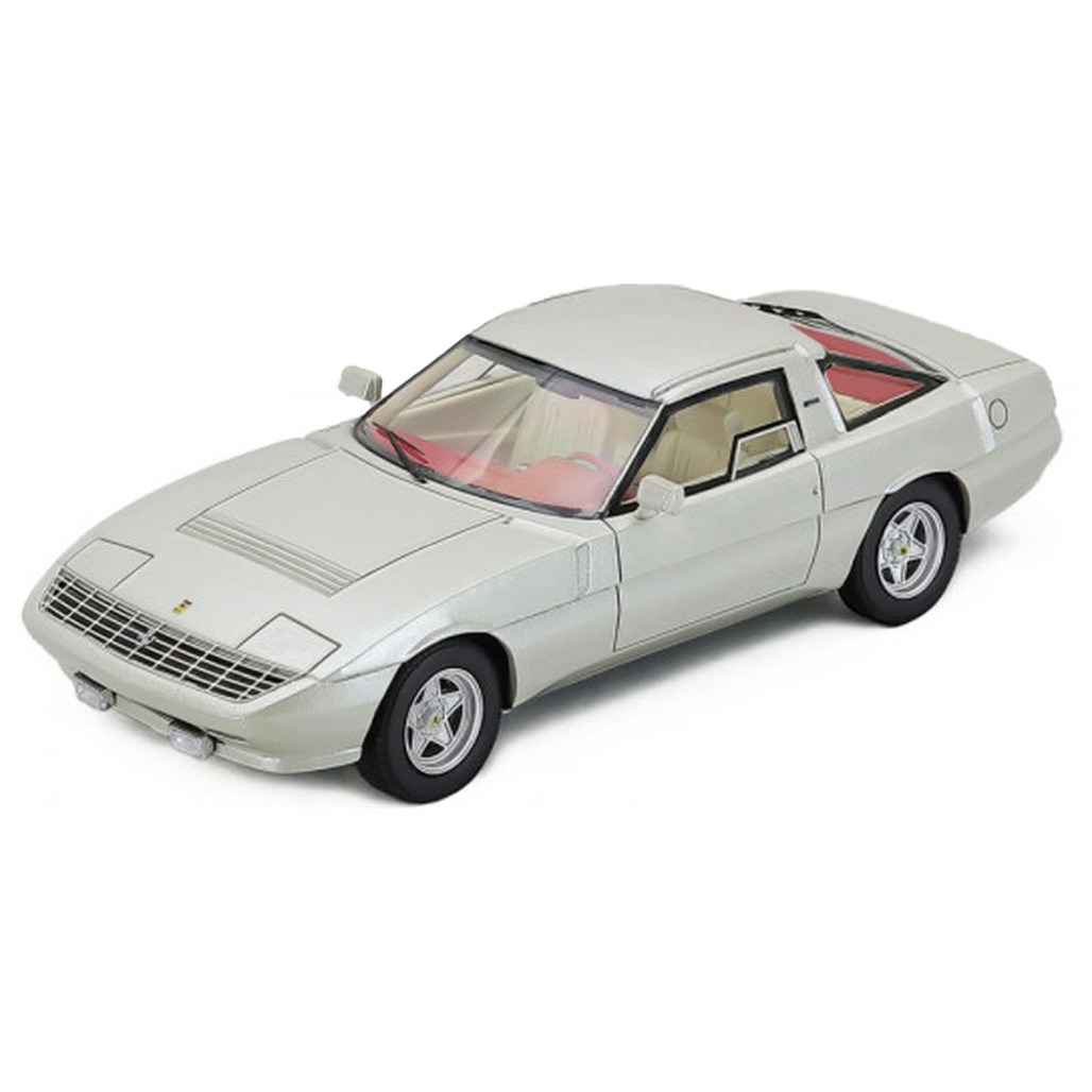 Kess 1:43 resin model of the 1983 Ferrari Meera S Michelotti in Fuji White. The Meera S was the last Ferrari to be designed by Michelotti. It was a one-off customised project built exclusively for Saudi Arabian royalty. Based on the wedge-shaped, low-slung 400i, the Meera S was styled with protruding body panels, an open-slatted bonnet grille and wrap-around front and rear windscreens.