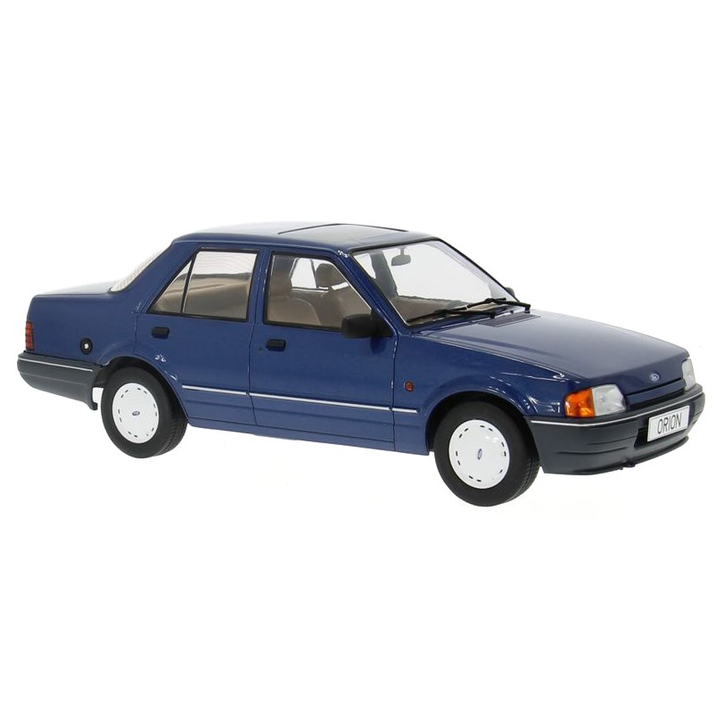MCG 1:18 diecast model of the 1986-1990 Ford Orion Mk.II in blue. In 1986 the Orion received the same facelift as the Escort. As well as its new looks, it was also now available with anti-lock brakes and a heated front windscreen. The engines in the range were modified, so that they could run on unleaded fuel without modifications to the cylinder head or fuel system.