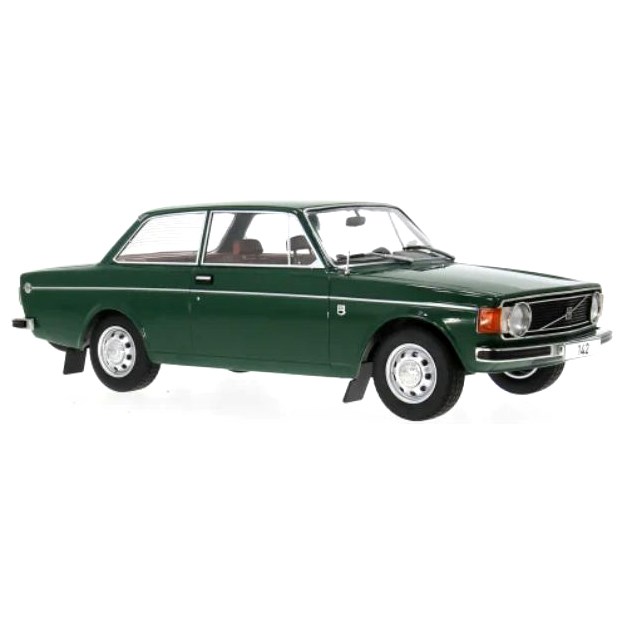 MCG 1:18 diecast model of the 1973 Volvo 142 in dark green. The 142 was the two-door sedan version of the Volvo 140 Series.
