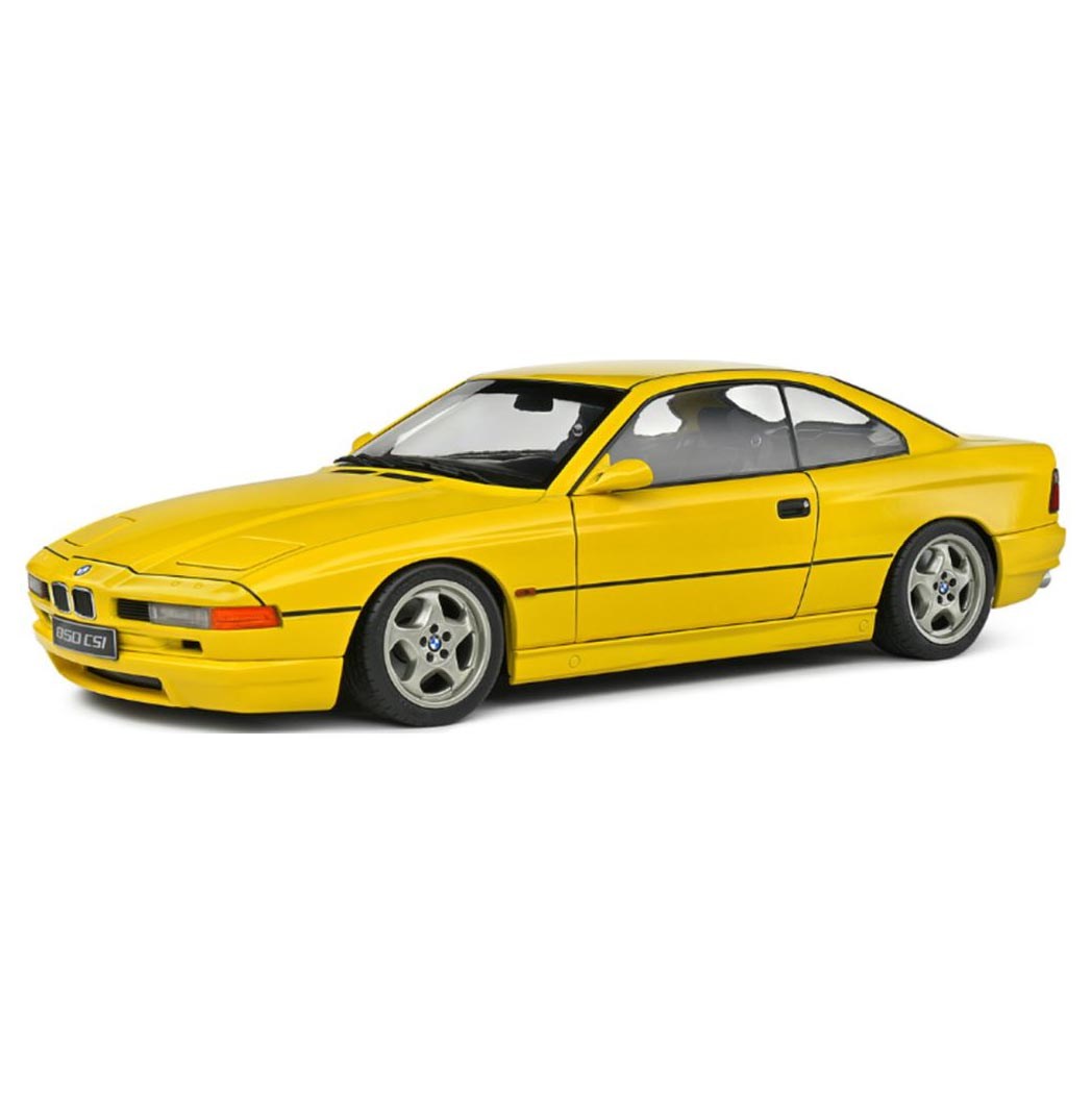 Solido 1:43 diecast model of the 1990 BMW 850 CSI in Dakar Yellow. The 850 was powered by a 5.0 litre V12 engine, and was available with either a four-speed automatic or six-speed manual gearbox.
