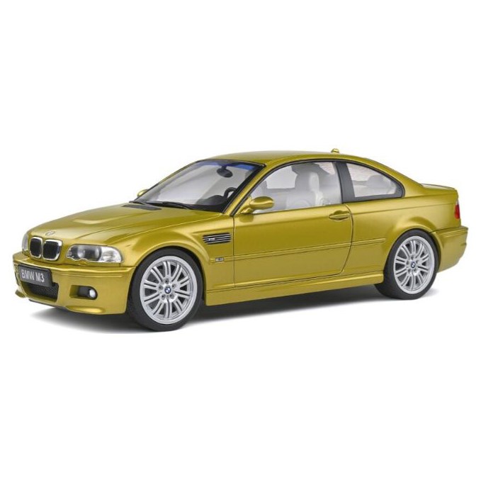 Solido 1:43 diecast model of the 2000 BMW M3 Coupe in Phoenix Yellow. The M3 performance model of the E46-spec. BMW 3 Series was introduced that year.