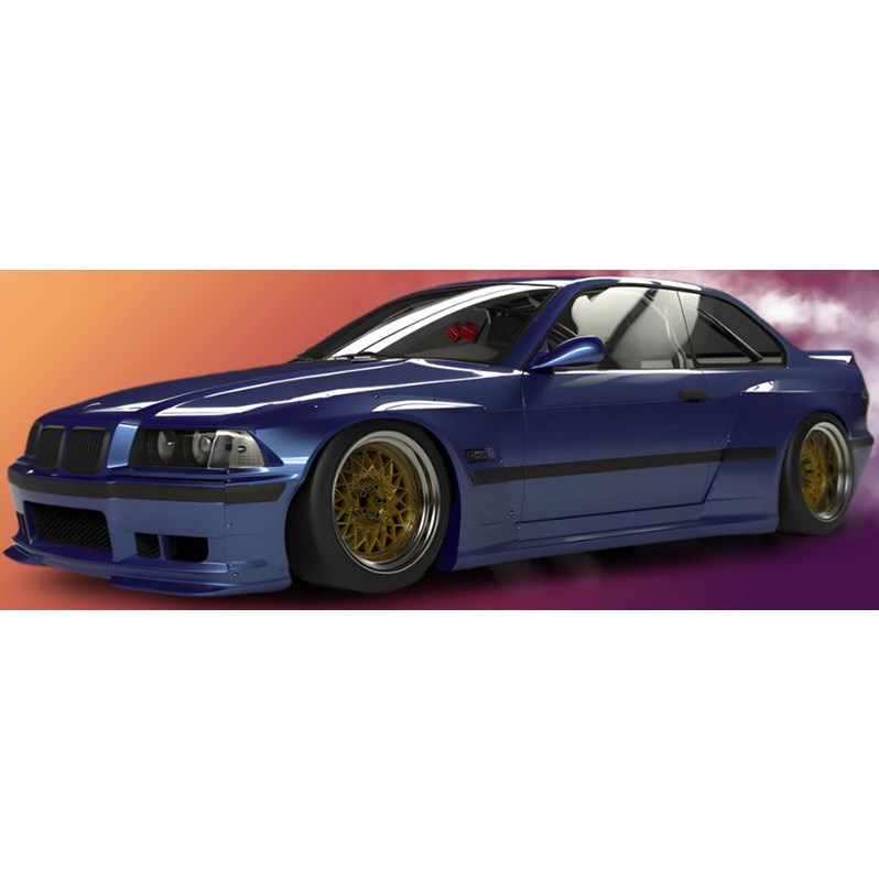Solido 1:18 diecast model of the 1990 BMW M3 Coupe Pandem in Estoril Blue. This version of the M3 has been treated to one of Pandem's outlandish bodykits.