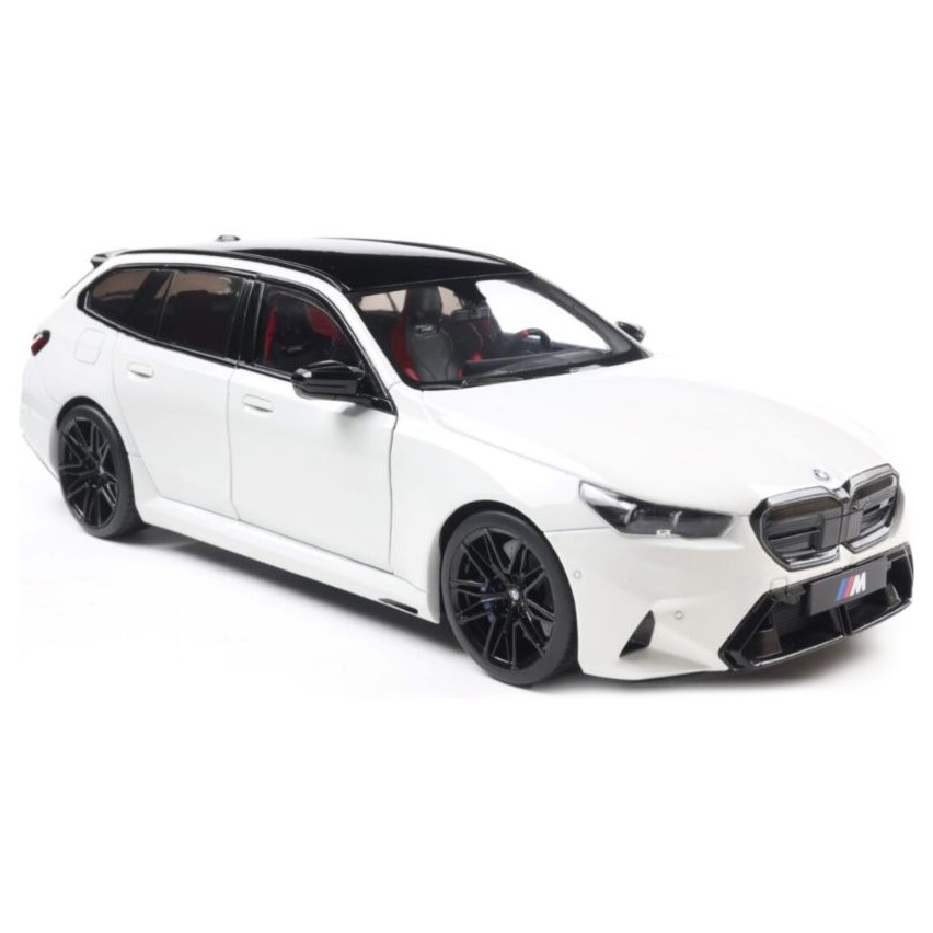 Solido 1:18 diecast model of the 2024 BMW M5 Touring in Alpine White. This car has an output of 717 bhp when the 4.4 litre twin-turbo V8 is used in conjunction with its electric motors.