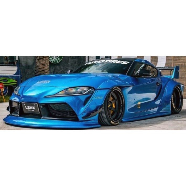 Solido 1:18 diecast model of the 2025 Toyota GR Supra with Liberty Walk bodykit in blue metallic. The fifth-generation Supra was unveiled at the 2019 North American International Auto Show in Detroit, 17 years since production had ceased on the previous iteration.