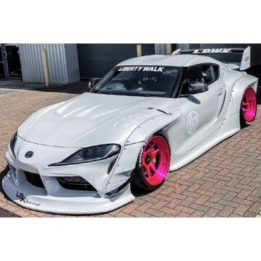 Solido 1:18 diecast model of the 2025 Toyota GR Supra with Liberty Walk bodykit in white. The fifth-generation Supra was unveiled at the 2019 North American International Auto Show in Detroit, 17 years since production had ceased on the previous iteration.