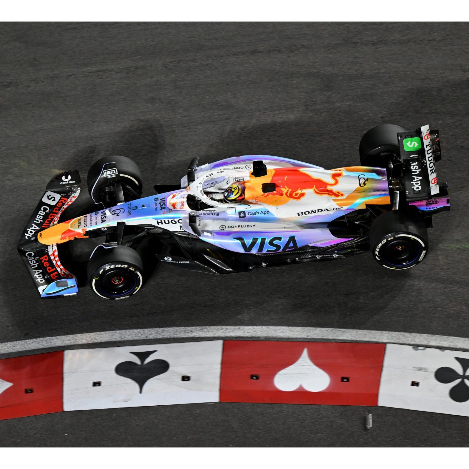Spark 1:43 resin model of the #6 Racing Bulls VCARB 02 as driven by Isack Hadjar in the 2025 Las Vegas Grand Prix. The team ran a one-off 'holographic' livery in this race, Hadjar finding himself promoted to sixth following the disqualification of the two McLarens.