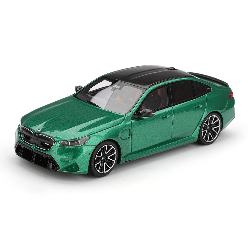 TrueScale Miniatures 1:43 resin model of the 2025 BMW M5 in Isle of Man Green Metallic. The 2025-spec. M5 is powered by a 4.4 litre twin-turbo V8 engine mated to an electric motor, for a combined output of 727 bp. The driver can change settings between all-wheel drive and rear-wheel drive.
